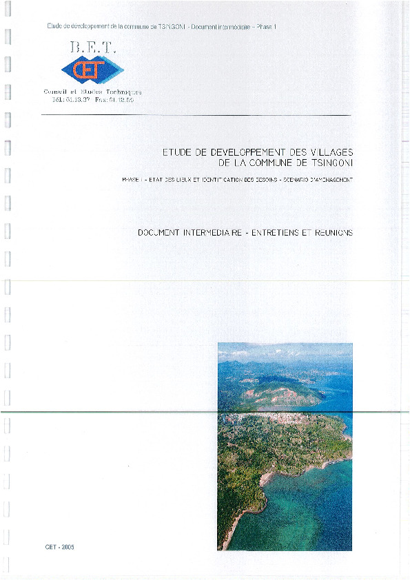 Problèmes soulevés : \nAboutir à une seule entité, une grande ville pour la commune de Tsingoni en favorisant les extensions de Combani et Tsingoni vers Mroalé ; alors que la Direction de l'Equipement propose une extension du village de Tsingoni vers M..